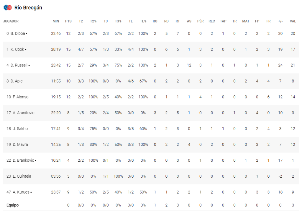 Si en anteriores encuentros mostró cierta irregularidad, esta noche Russell fue simplemente impecable. El base, nombrado MVP del partido, dirigió el equipo con una maestría sublime: 15 puntos y 12 asistencias que hilvanaron la ofensiva celeste. Su compañero en el perímetro, Cook, le acompañó en la fiesta anotadora con otros 15 puntos, aportando además una sólida labor en el rebote con 6 capturas defensivas.