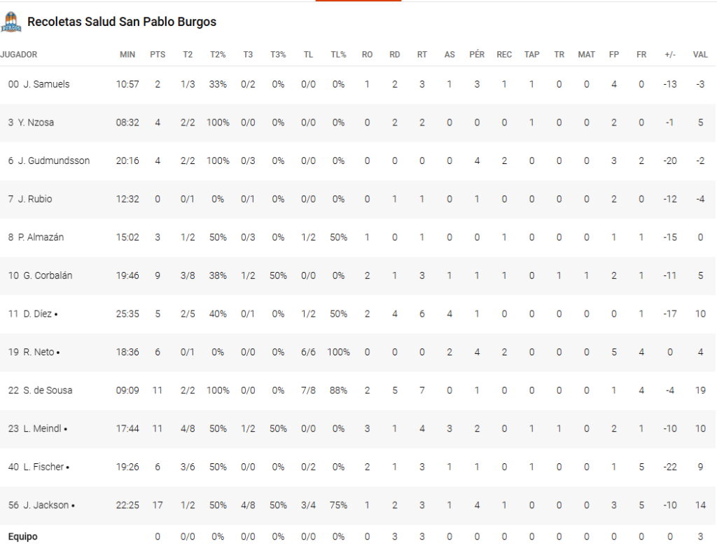 Pero la noche fue, sobre todo, colectiva. El Breogán, que ya venía mostrando buenas cifras desde el triple esta temporada, fue espectacular, alcanzando un demoledor 50% de acierto (14/28) que actuó como un martillo pilón para cualquier atisbo de reacción burgalés.