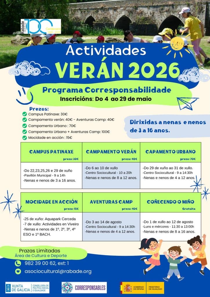 Desde el gobierno local animan a las familias a consultar los detalles de cada actividad y a inscribirse con antelación, dado el número limitado de plazas. Con esta apuesta, Rábade refuerza su red de apoyo a las familias y promueve un ocio activo, inclusivo y educativo durante los meses estivales.