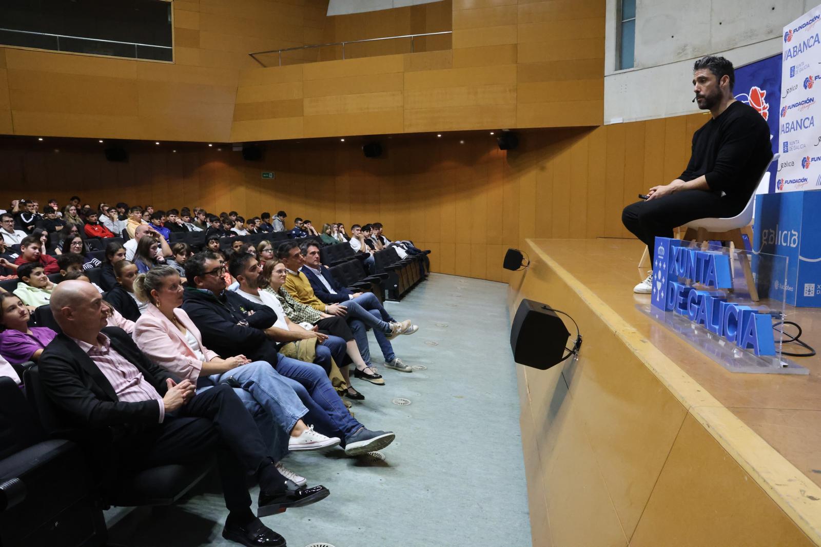 El excapitán de la selección española de rugby compartió su experiencia con estudiantes de cuatro centros educativos en un acto inaugurado por el delegado territorial de la Xunta. La piragüista Tania Fernández será la próxima protagonista en octubre